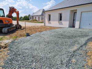 L’équipe de Lemaître TP a réalisé cette pose de dalles alvéolaires et empierrement pour un client (particulier) dans le cadre de la création d’un parking à Vay.